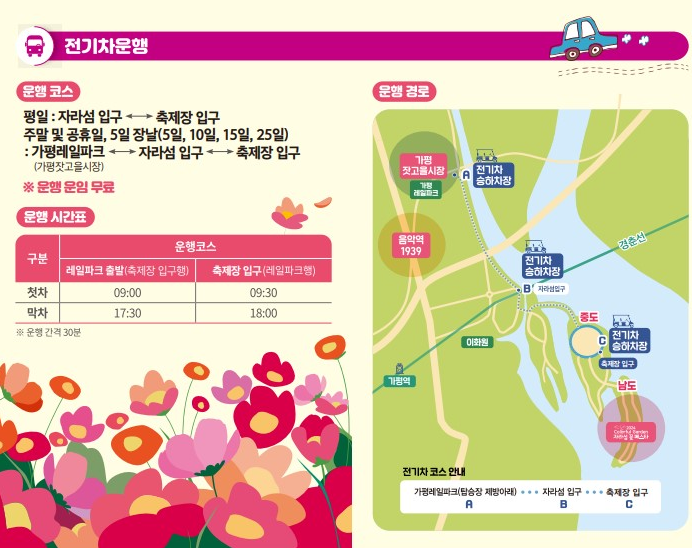 ※전기차 운행과 선박운항은 아래표 참조 또는 가평 문화관광 홈페이지를 참조하시기 바랍니다!